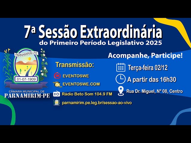 Áudio: 7ª Sessão Ordinária do 2º Período Legislativo Câmara Municipal de Vereadores de Parnamirim-PE